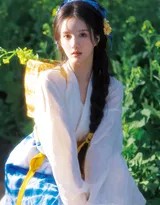 刘些宁汉服花田寻春记 白衣蓝裙映金波