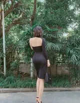 夜幕剪影:黑色紧身裙下的都市风华与自信步履