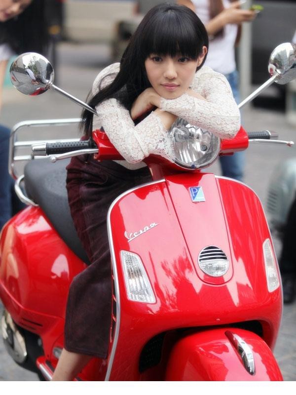 沪上掠影白百何骑复古摩托演绎都市清新风潮