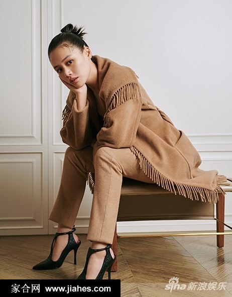 马思纯高束发髻身着毛呢大衣香肩微露尽显御姐风范