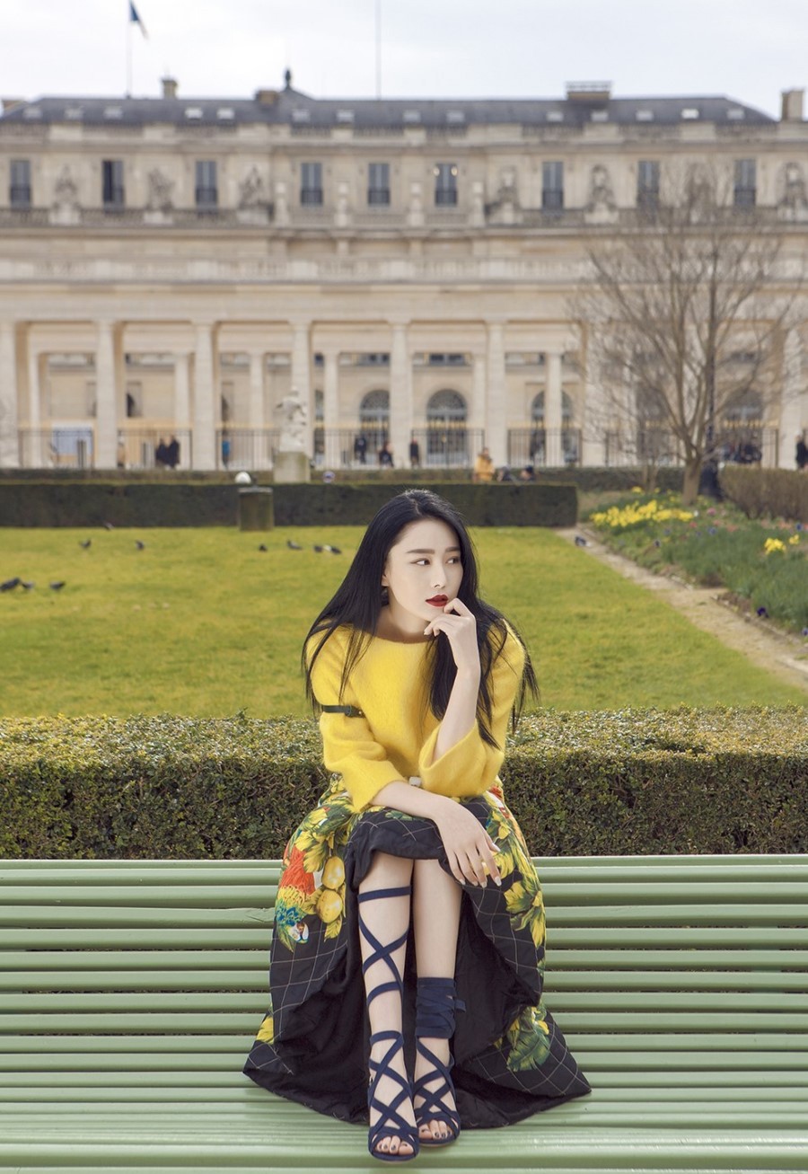 朱珠时尚透视长裙写真光影艺术下的自信宣言