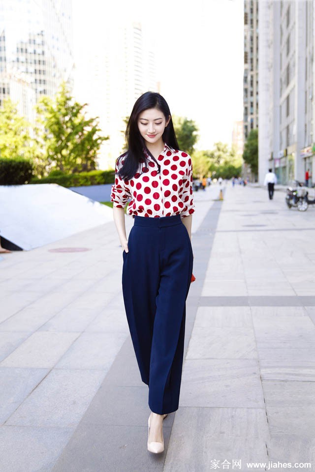 景甜秋日复古漫游波点摇曳光影间