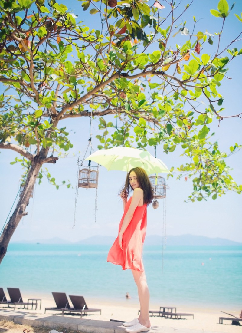 姚笛夏日旅行随拍全素颜出镜红色长裙绽放自然光彩