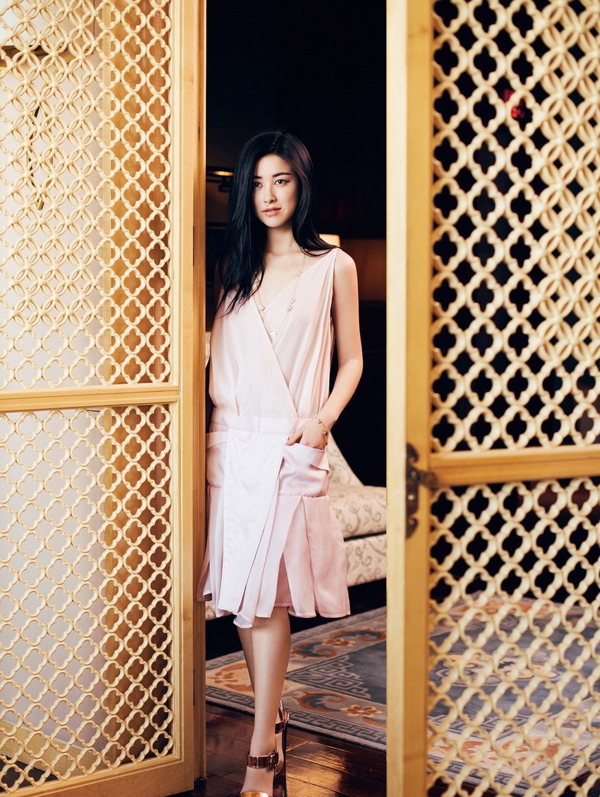 朱珠时尚透视长裙写真光影艺术下的自信宣言
