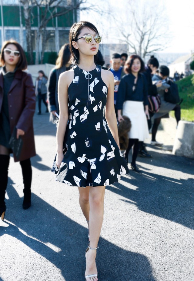 周冬雨巴黎街头的简约风潮