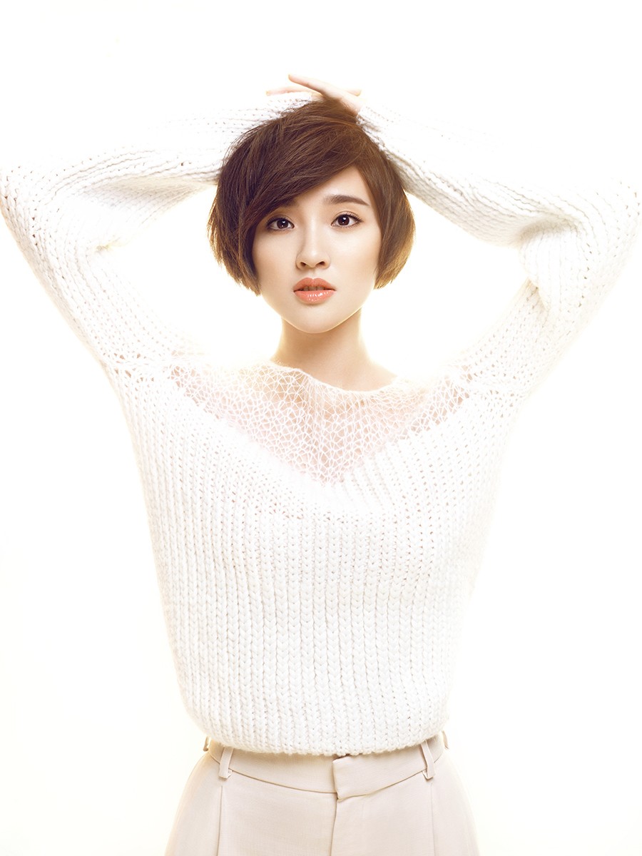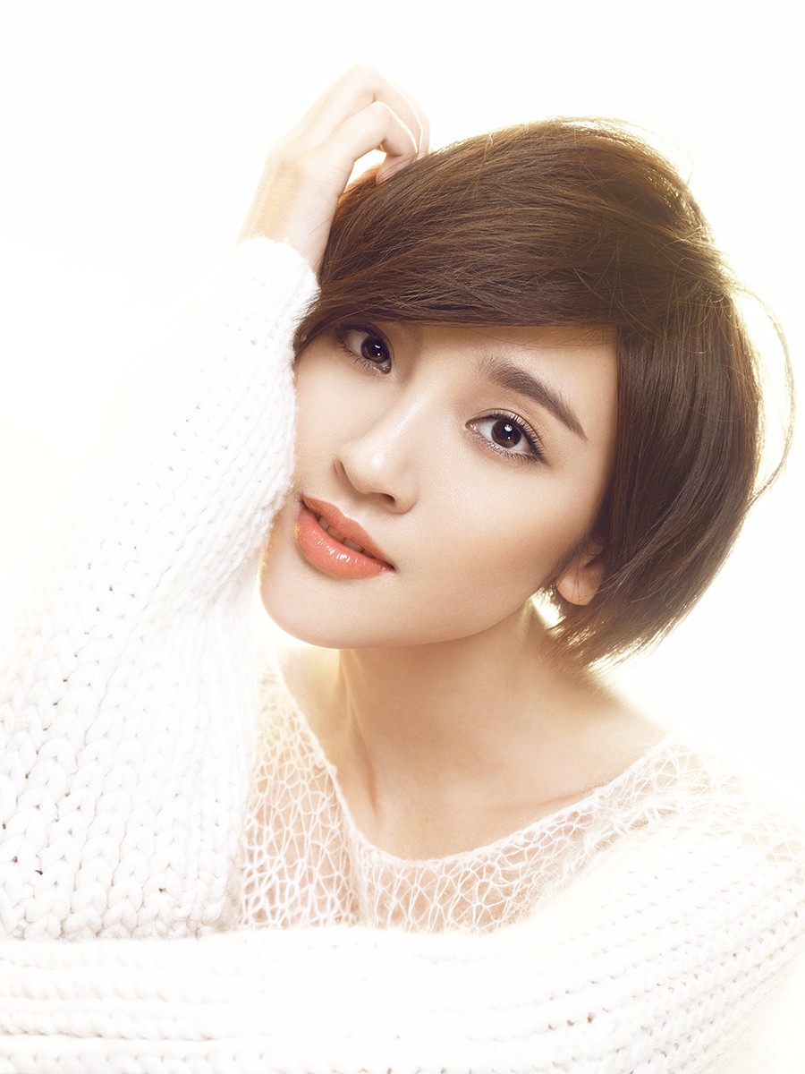 除了妆容,发型与穿搭也极大地强化了整体氛围。唐艺昕非常适合短发,利落轻盈的短发能凸显其五官的精致与古灵精怪的气质。在这组写真中,发型打理得蓬松而自然,避免了贴头皮的死板,与她灵动的气质相得益彰。在穿搭上,她选择了最基础的白色毛衣。对于像她这样的冷白皮而言,纯净的白色是绝佳的选择,能够最大限度地衬托出肤色的白皙与通透。这种“暖妆+冷衣”的搭配,既通过妆容赋予了冬日所需的温度感,又通过服装保持了视觉上的清新与纯净,堪称冷暖平衡的穿搭智慧。