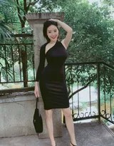 黑色,无疑是时尚谱系中最具力量感的颜色之一。它深邃、包容,并拥有无与伦比的塑形魔力。正如时尚分析所指出的,一套剪裁精良的黑色服装,能瞬间为穿着者拉满气场。在这组写真中,紧身连衣裙的设计将这一特质发挥得淋漓尽致。它如第二层肌肤般贴合身体的每一处曲线,从流畅的肩背线条到曼妙的腰臀比例,都被简洁而有力地强调出来。这种勾勒并非直白的展示,而是一种含蓄的自信宣言。面料在街灯与夜色下泛着柔和的光泽,正如蔡文静在某组黑色长裙写真中所展现的那样,黑色能将妖娆与气场完美融合,藏在线条里的,是无需言说的掌控力。