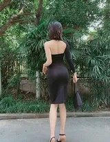 夜幕剪影:黑色紧身裙下的都市风华与自信步履