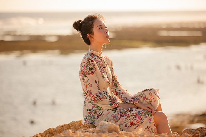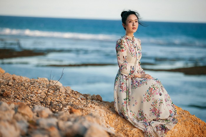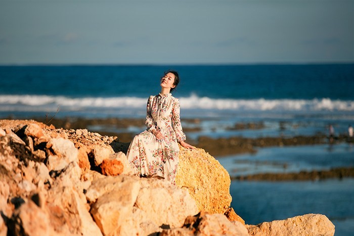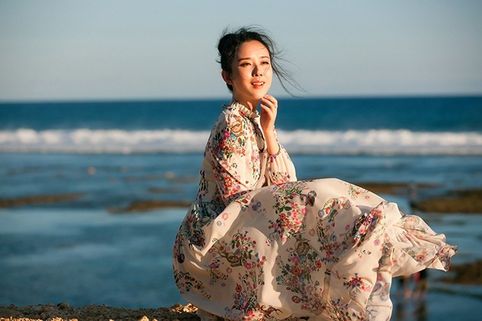 颜丹晨海边听风仙气弥漫森系写真定格光影之诗