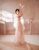 当杨紫身披一袭来自Khaled & Marwan的2025春夏高级定制轻纱刺绣裙现身时,仿佛将一段东方的朦胧诗篇带入了现实。这不仅仅是一次造型的亮相,更是这位从国民记忆中走出的演员,在时尚疆域里一次从容而惊艳的“破界”。裸色薄纱如晨雾般轻柔包裹,其上精工细作的刺绣宛如月光在纱面上生长的藤蔓,行走间,裙摆翩跹,流光暗涌,完美诠释了何为“轻纱曼舞,雅韵自生”。