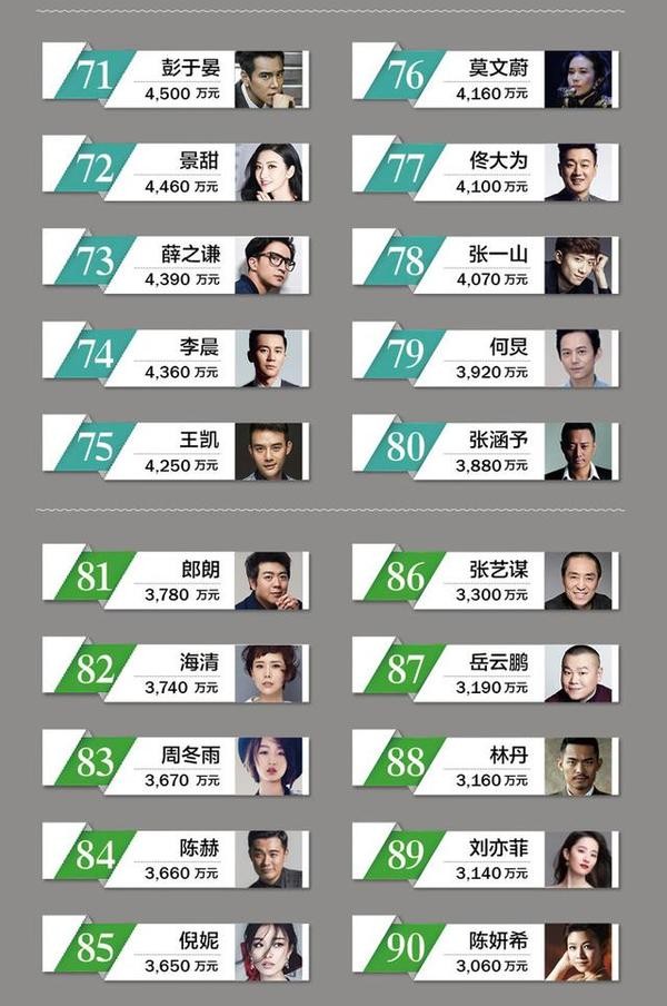 中国明星排行榜100强:流量之战与价值博弈