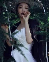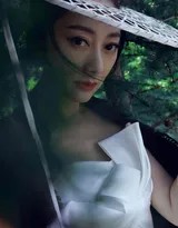 这组照片的拍摄场景选择也极为考究。或是在苍翠欲滴的竹林深处,或是在古朴典雅的亭台楼阁之前,甚至是在氤氲着雾气的水边。自然与人文景观共同构建了一个充满写意色彩的江湖空间。光影的运用尤其巧妙,柔和的自然光勾勒出她面部的轮廓和衣料的质感,逆光拍摄时,白衣的边缘仿佛镶上了一层金色的光晕,圣洁而梦幻。