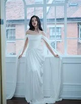 白色长裙在她的身上,脱离了单纯的服饰范畴,升华为一种氛围和气质。它象征着毫无杂质的纯净,与她“不带工业糖精,如山泉水般清冽”的独特甜美气质相辅相成。抹胸设计大方展露出她优美的肩颈线和锁骨,赋予造型以恰到好处的呼吸感与现代典雅。
