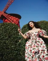 钟楚曦对多种风格的驾驭能力在此也得到了印证。从《芳华》中走出的她,早已超越了单一的荧幕形象。她可以是在VOGUE镜头下身着烈焰红裙、充满野性张力的“海妖”;也可以是金鸡奖红毯上身着肉粉色闪钻长裙的焦点;而在ELLE风尚大典上,一套极具艺术感的抹胸长裙又能被她演绎出别样的建筑美学。本次的印花长裙造型,则在她丰富的时尚图谱中,添上了一笔浓淡相宜、充满呼吸感的田园浪漫色彩。