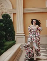 钟楚曦春日印花长裙写真:自然之境中的时尚诗篇