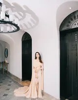 侧身回眸的瞬间,光影雕刻完美侧颜,华美耳饰摇曳生姿。