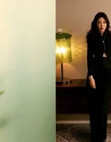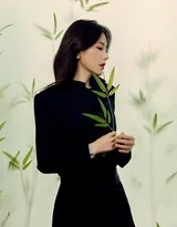 曾黎本人的气质为这组作品注入了灵魂。她身上兼具古典的端庄与现代的独立,清冷中带着温度,疏离中蕴含故事。她的眼神时而沉静望向远方,时而与镜头悄然交汇,没有过多的表情渲染,却传递出丰富的内在情绪——或许是沉思,是放空,是与自然共鸣的宁静喜悦。这种“收”着的表演,反而比外放的表达更具力量,更契合竹林清幽深邃的语境。