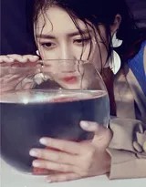 在光影与水的交界处,黎一萱化身为一尾神秘的人鱼,开启了这场名为“金鱼缸里的世界”的视觉叙事。这组主题写真超越了传统肖像的范畴,更像是一首关于禁锢与自由、现实与幻梦的视觉诗篇。湿发造型在此不仅是外形的大胆突破,更成为连接内外世界的媒介——滴落的水珠仿佛缸壁渗出的露水,发丝蜿蜒的曲线呼应着水中涟漪的纹路。