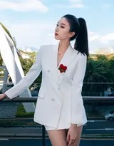 刘令姿的时尚表现力一直备受认可,她能游刃有余地驾驭多种风格,从妩媚裙装到干练西装,每种造型都能被她赋予独特的灵魂。而这套白色西装造型尤为特别,它摒弃了传统西装的刻板与严肃,通过oversize的剪裁和短裤的搭配,注入了青春的活力与不羁的洒脱感。肩部利落挺括的线条与她天生的直角肩相得益彰,完美撑起了西装的气场,而纤薄的身形则避免了宽松款式可能带来的臃肿,反而穿出了一种“慵懒不拖沓”的松弛与优雅。