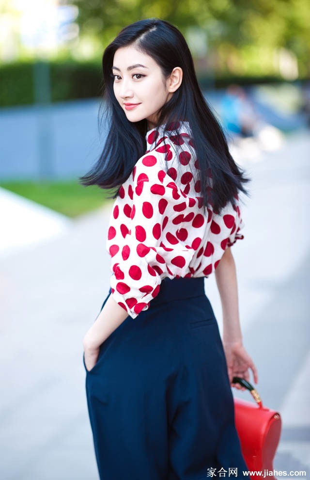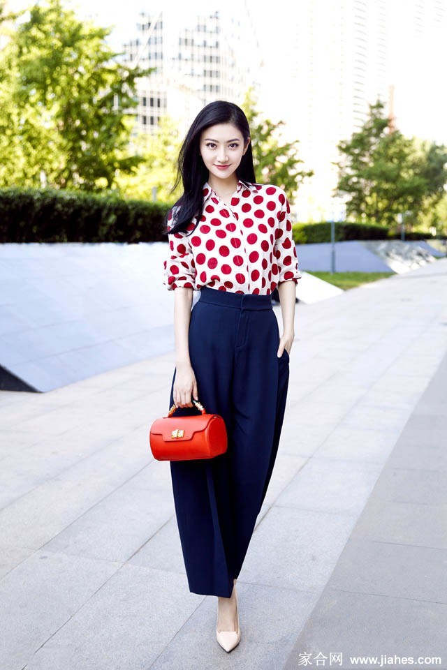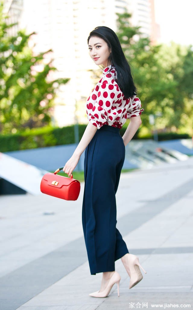 下身搭配的高腰阔腿裤,则是复古风潮的另一核心。它完美地拉长了身体线条,营造出“胸以下全是腿”的视觉比例。阔腿裤行走间的摇曳流动,与波点的跳跃感形成了美妙的呼应,整体造型张弛有度。景甜或倚靠树干,或漫步林间,裤腿随着步伐轻轻摆动,一种自信洒脱、从容不迫的气场自然流露。这种搭配公式,不仅复刻了黄金年代的时尚风潮,也极为贴合当下人们对既时尚又实穿的需求。